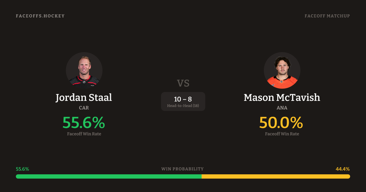 Jordan Staal vs Mason McTavish — Faceoff Head-to-Head