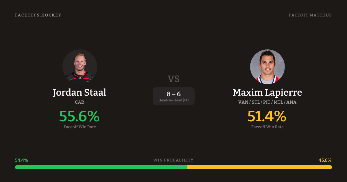 Jordan Staal vs Maxim Lapierre — Faceoff Head-to-Head