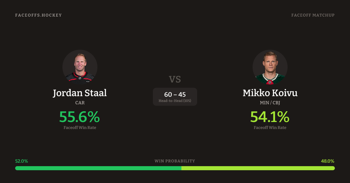 Jordan Staal vs Mikko Koivu — Faceoff Head-to-Head