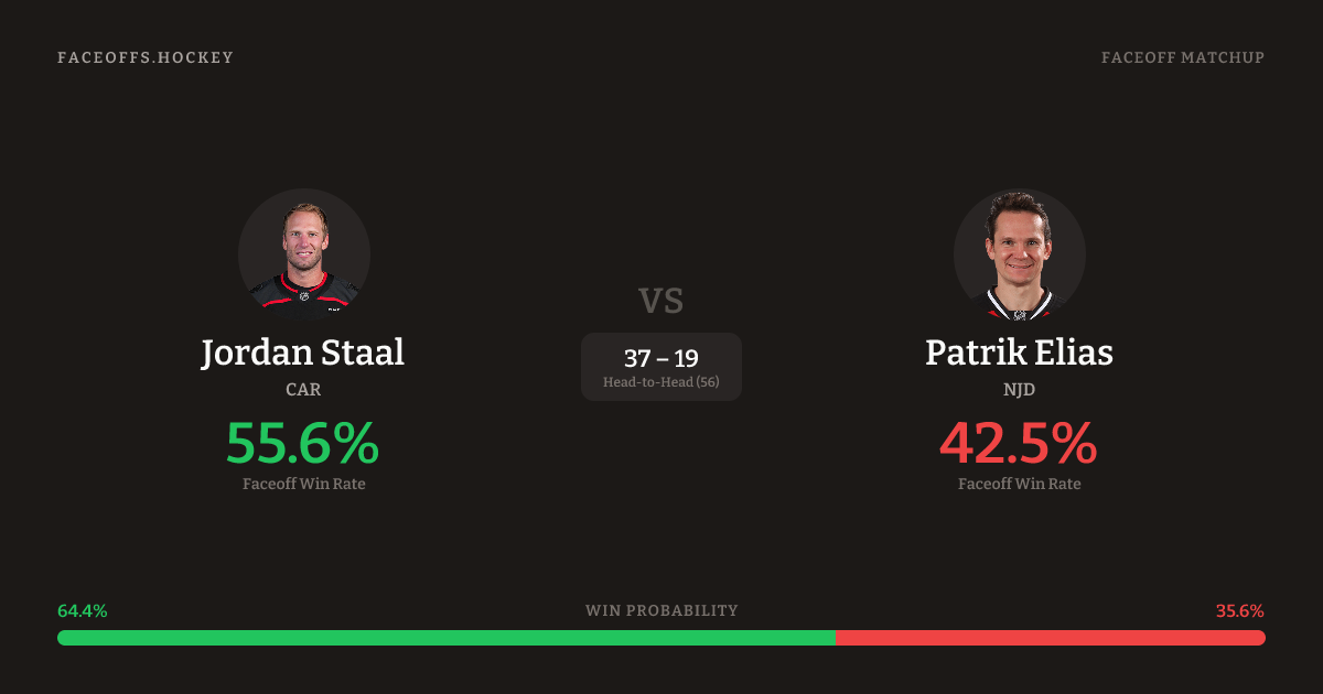 Jordan Staal vs Patrik Elias — Faceoff Head-to-Head