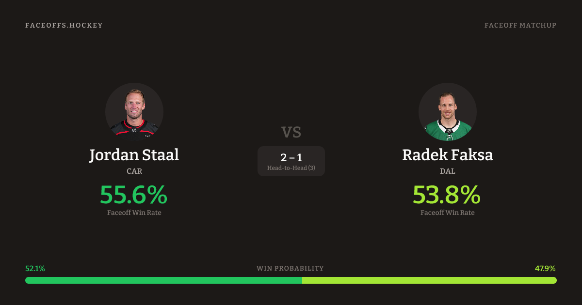Jordan Staal vs Radek Faksa — Faceoff Head-to-Head