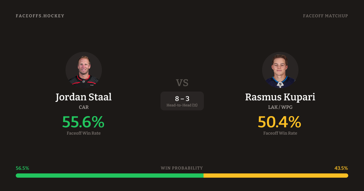 Jordan Staal vs Rasmus Kupari — Faceoff Head-to-Head