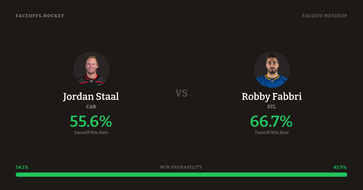 Jordan Staal vs Robby Fabbri — Faceoff Head-to-Head