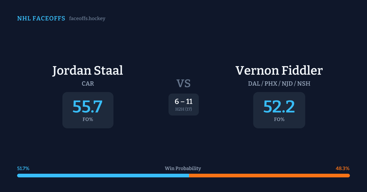 Jordan Staal vs Vernon Fiddler — Faceoff Head-to-Head
