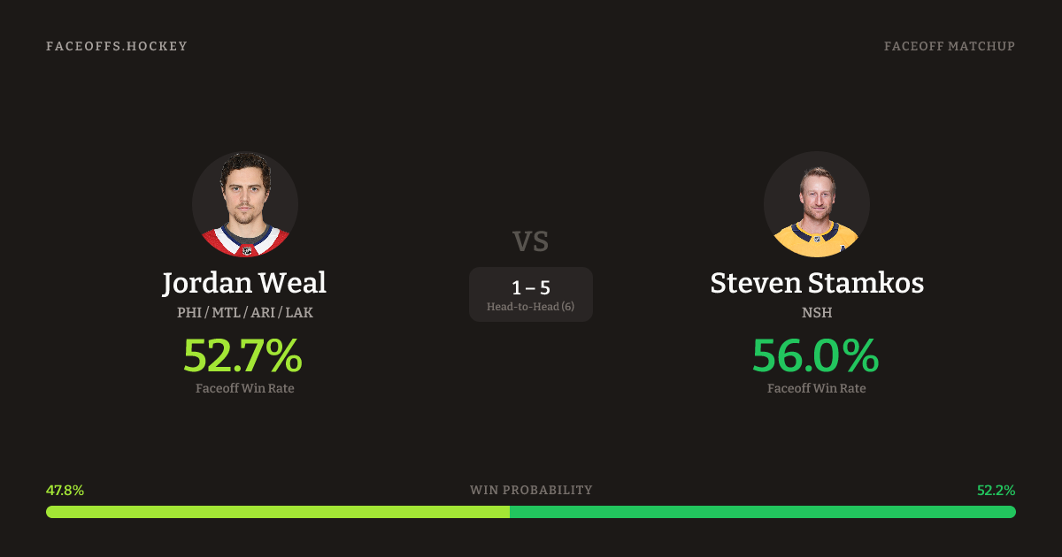 Jordan Weal vs Steven Stamkos — Faceoff Head-to-Head