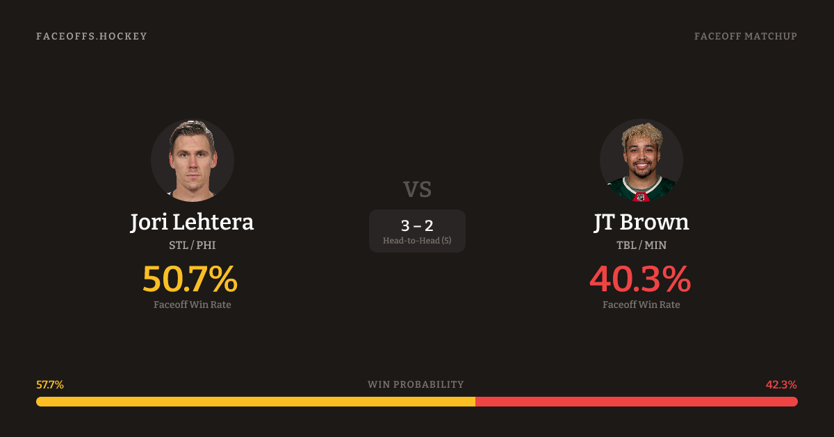 Jori Lehtera vs JT Brown — Faceoff Head-to-Head