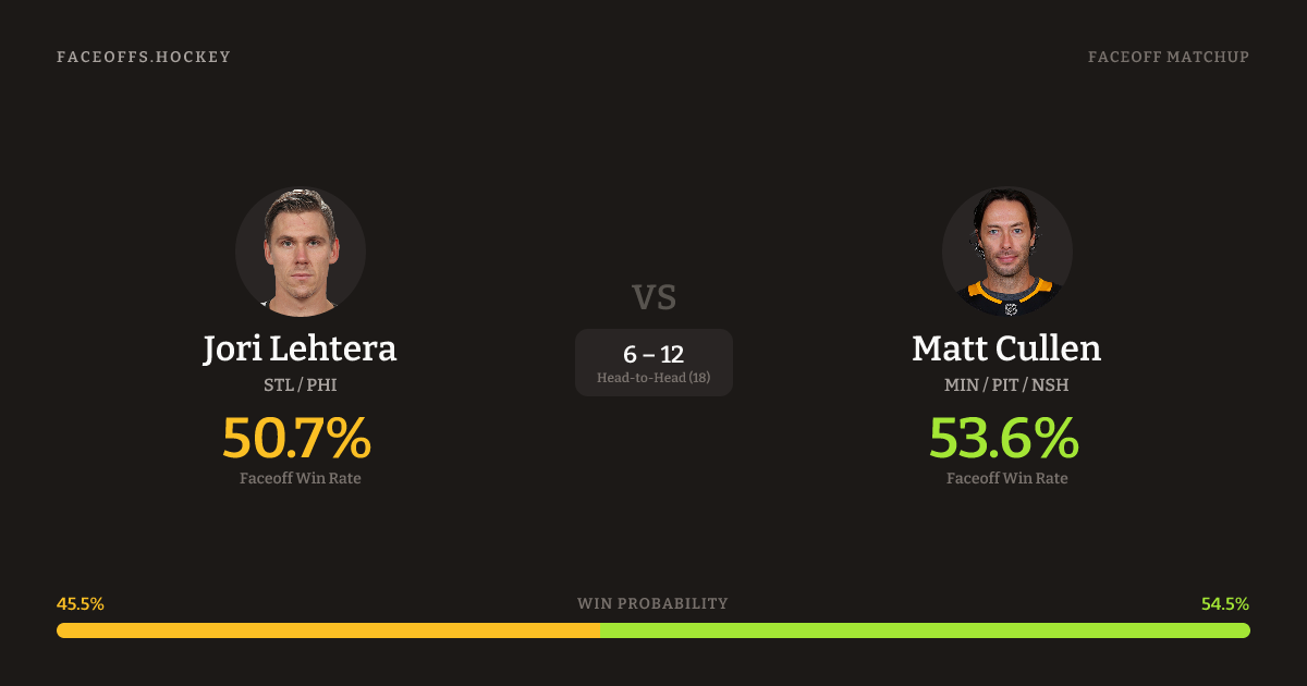 Jori Lehtera vs Matt Cullen — Faceoff Head-to-Head
