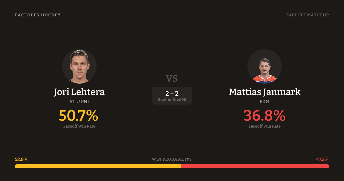 Jori Lehtera vs Mattias Janmark — Faceoff Head-to-Head