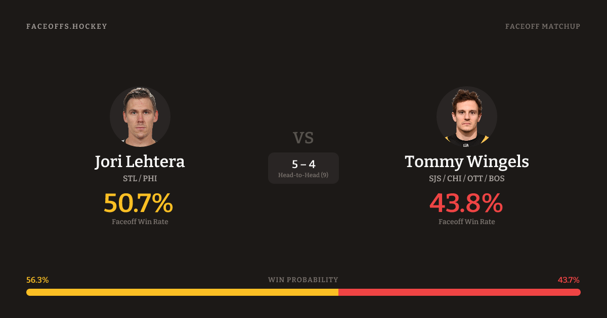 Jori Lehtera vs Tommy Wingels — Faceoff Head-to-Head