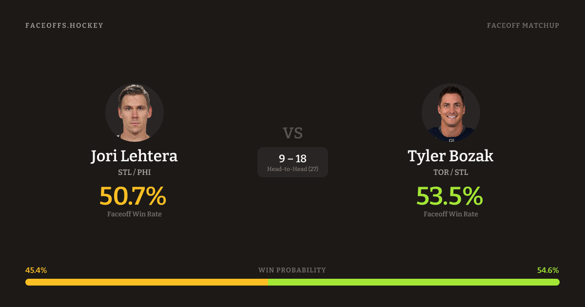 Jori Lehtera vs Tyler Bozak — Faceoff Head-to-Head