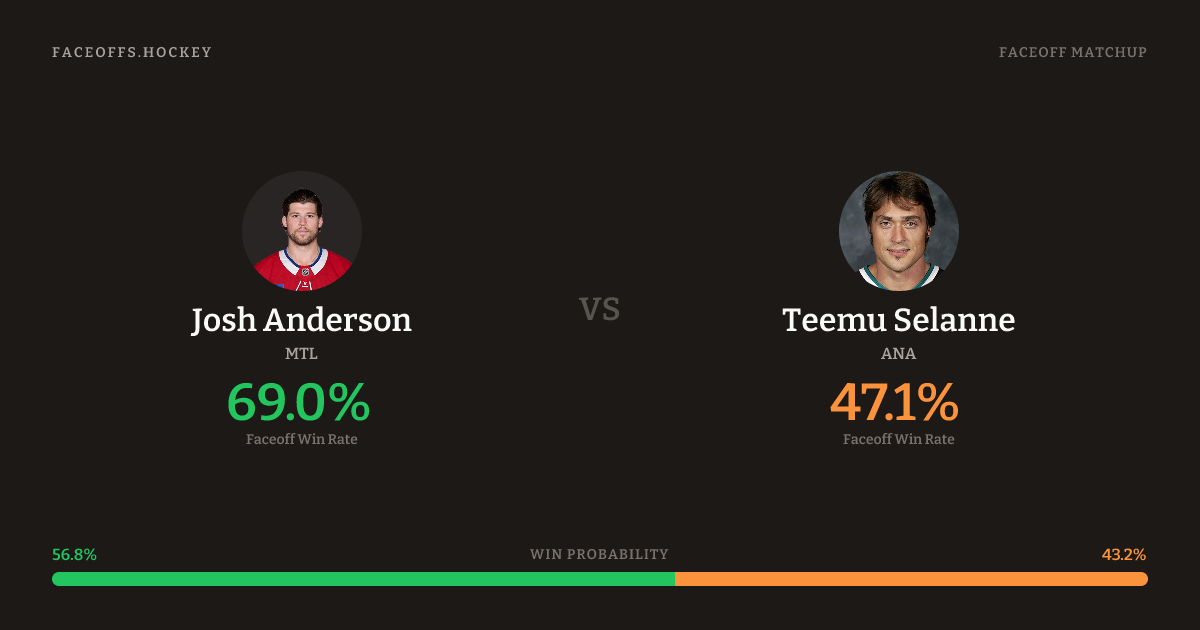 Josh Anderson vs Teemu Selanne — Faceoff Head-to-Head