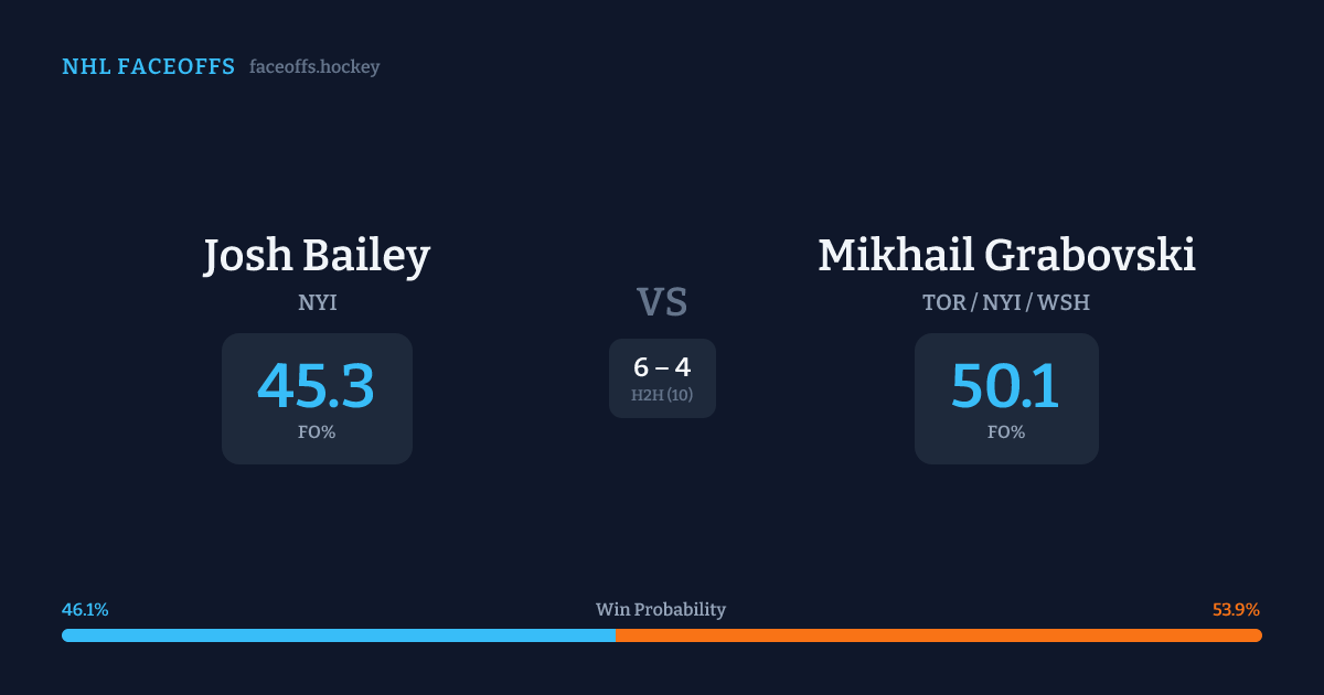 Josh Bailey vs Mikhail Grabovski — Faceoff Head-to-Head
