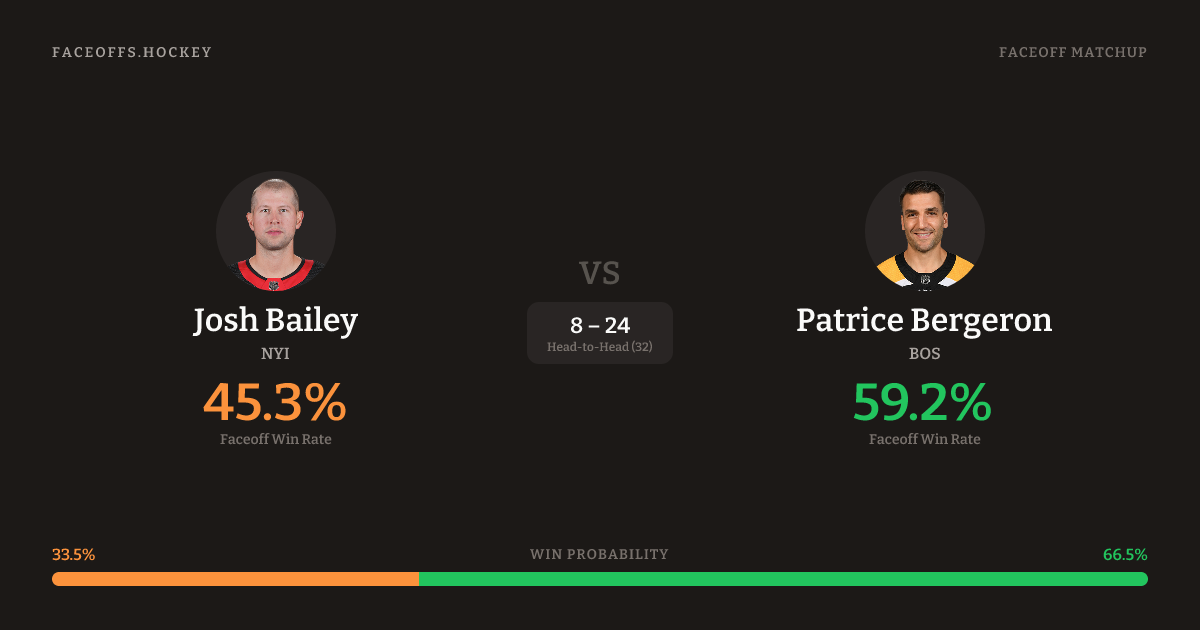 Josh Bailey vs Patrice Bergeron — Faceoff Head-to-Head