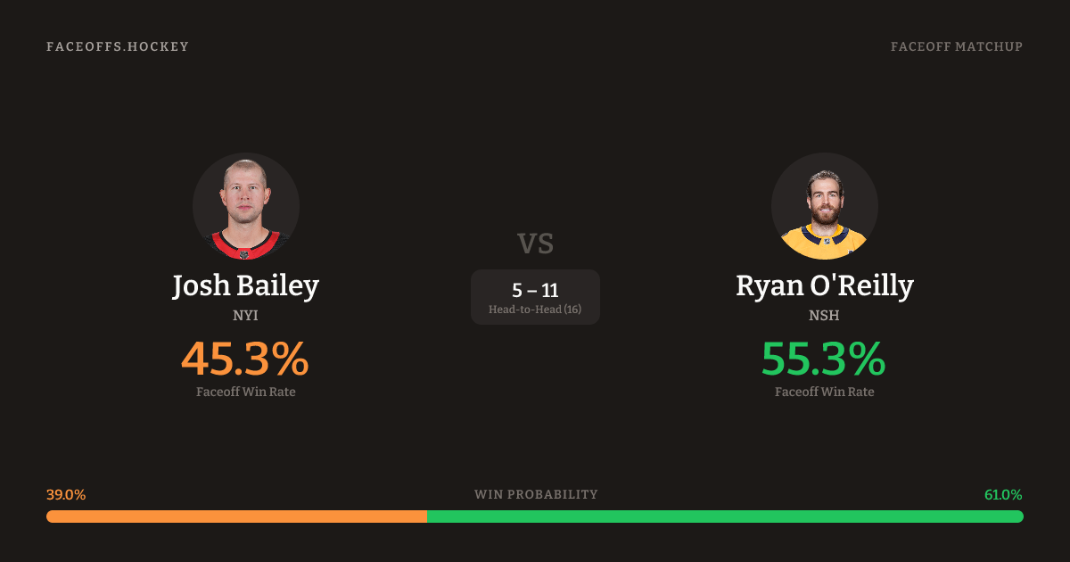 Josh Bailey vs Ryan O'Reilly — Faceoff Head-to-Head