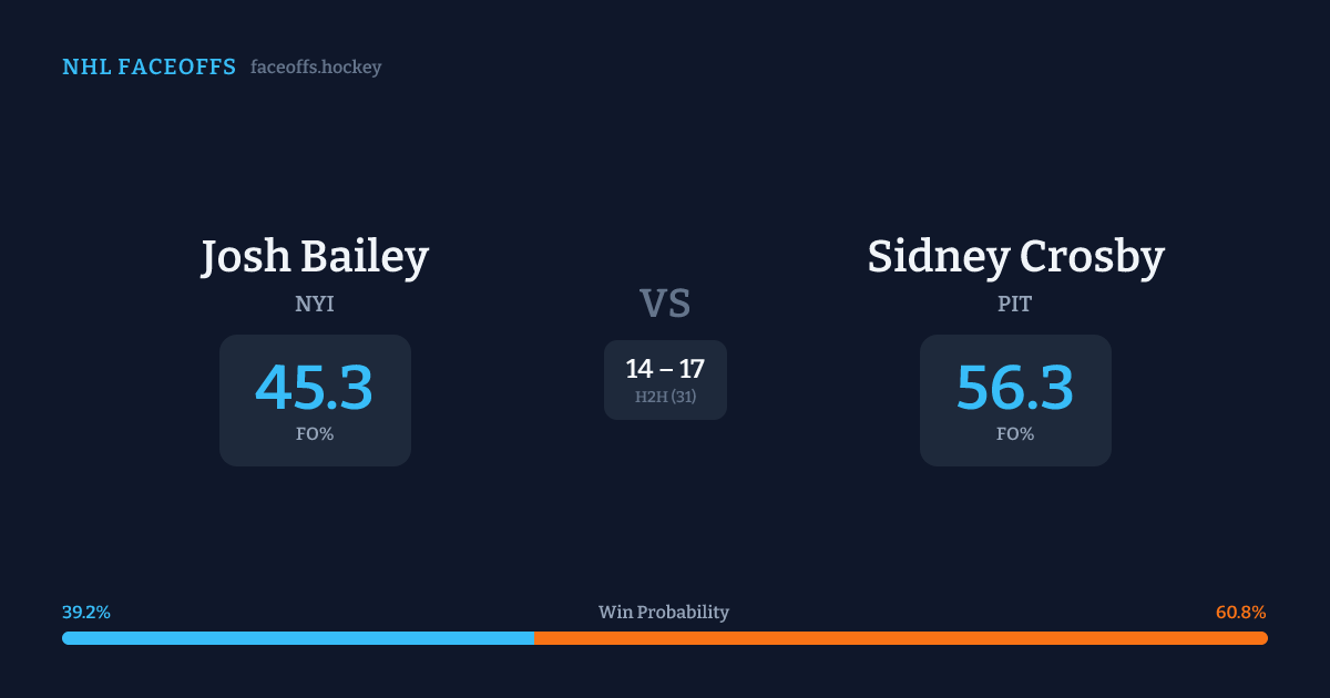 Josh Bailey vs Sidney Crosby — Faceoff Head-to-Head