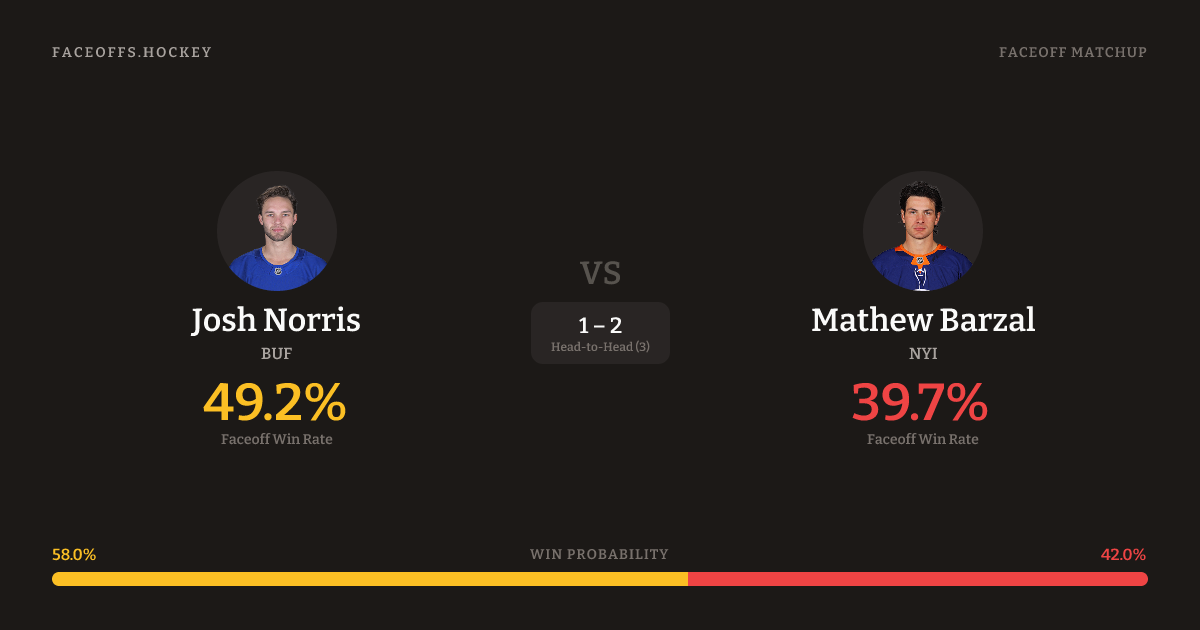Josh Norris vs Mathew Barzal — Faceoff Head-to-Head