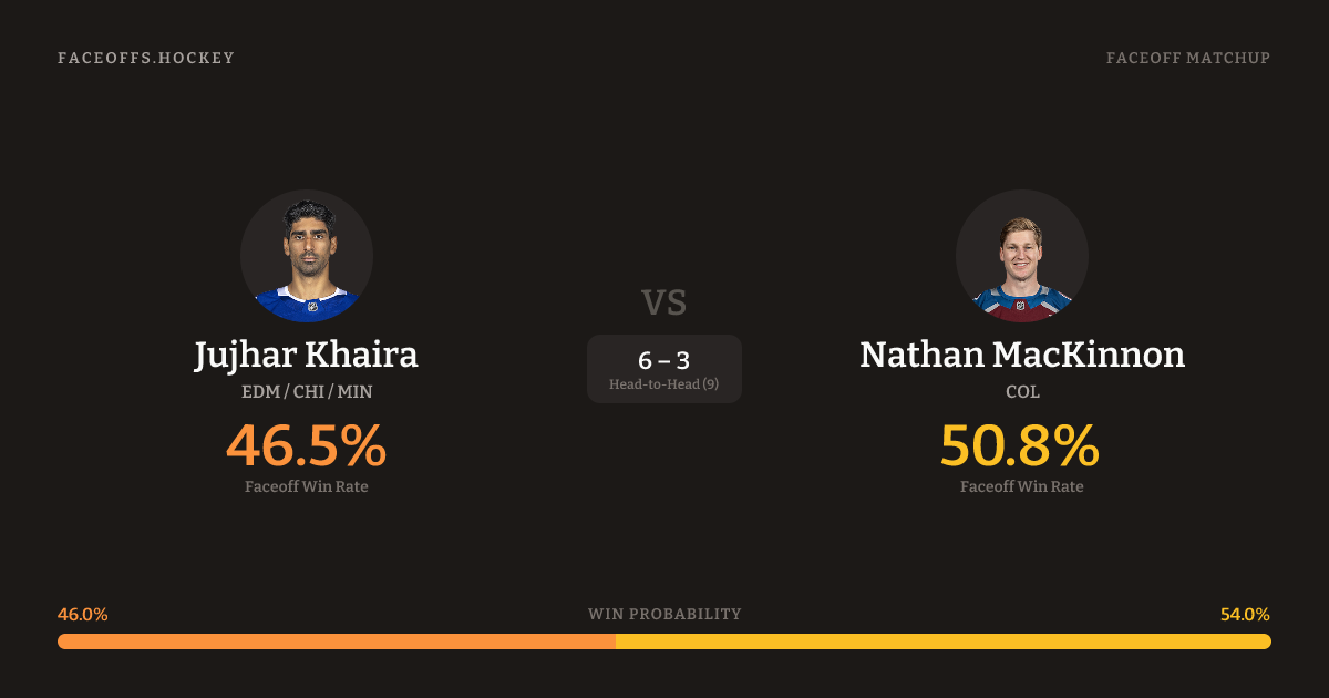 Jujhar Khaira vs Nathan MacKinnon — Faceoff Head-to-Head