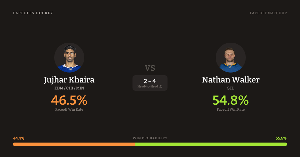 Jujhar Khaira vs Nathan Walker — Faceoff Head-to-Head