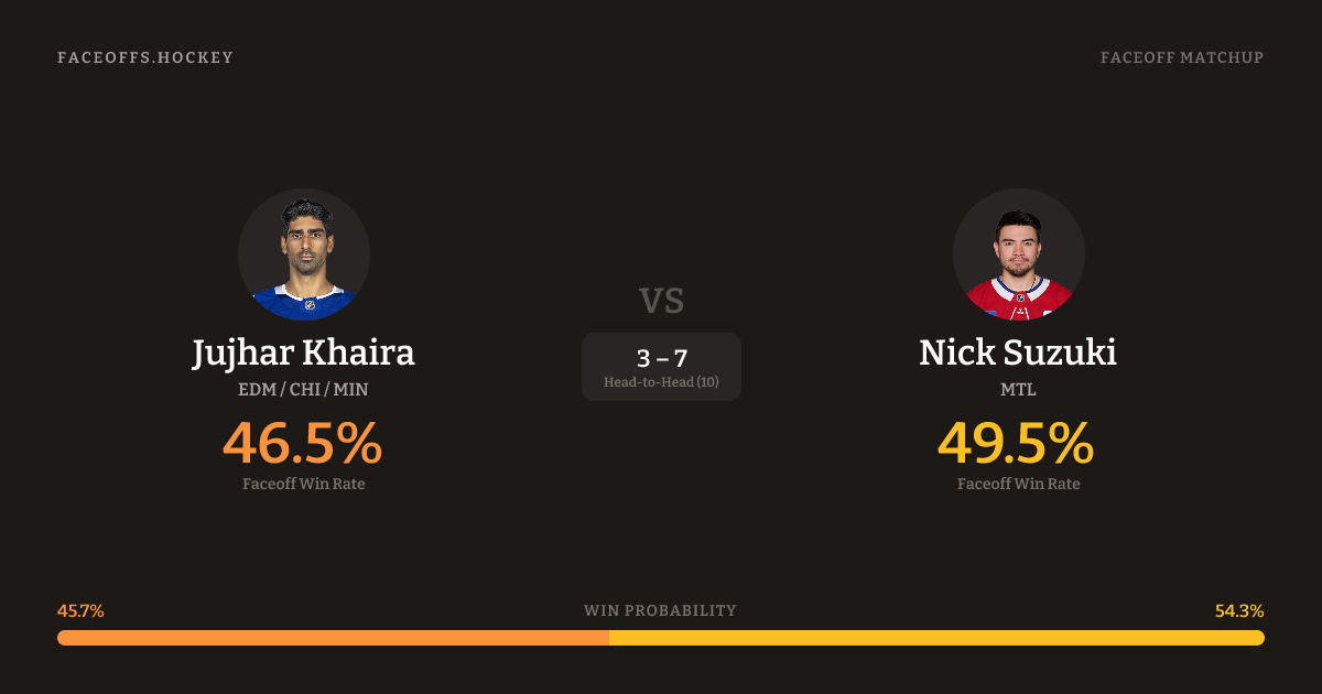 Jujhar Khaira vs Nick Suzuki — Faceoff Head-to-Head