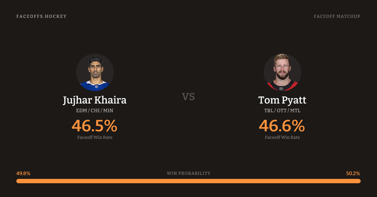 Jujhar Khaira vs Tom Pyatt — Faceoff Head-to-Head