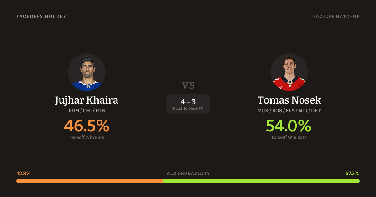 Jujhar Khaira vs Tomas Nosek — Faceoff Head-to-Head