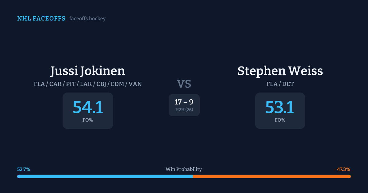 Jussi Jokinen vs Stephen Weiss — Faceoff Head-to-Head