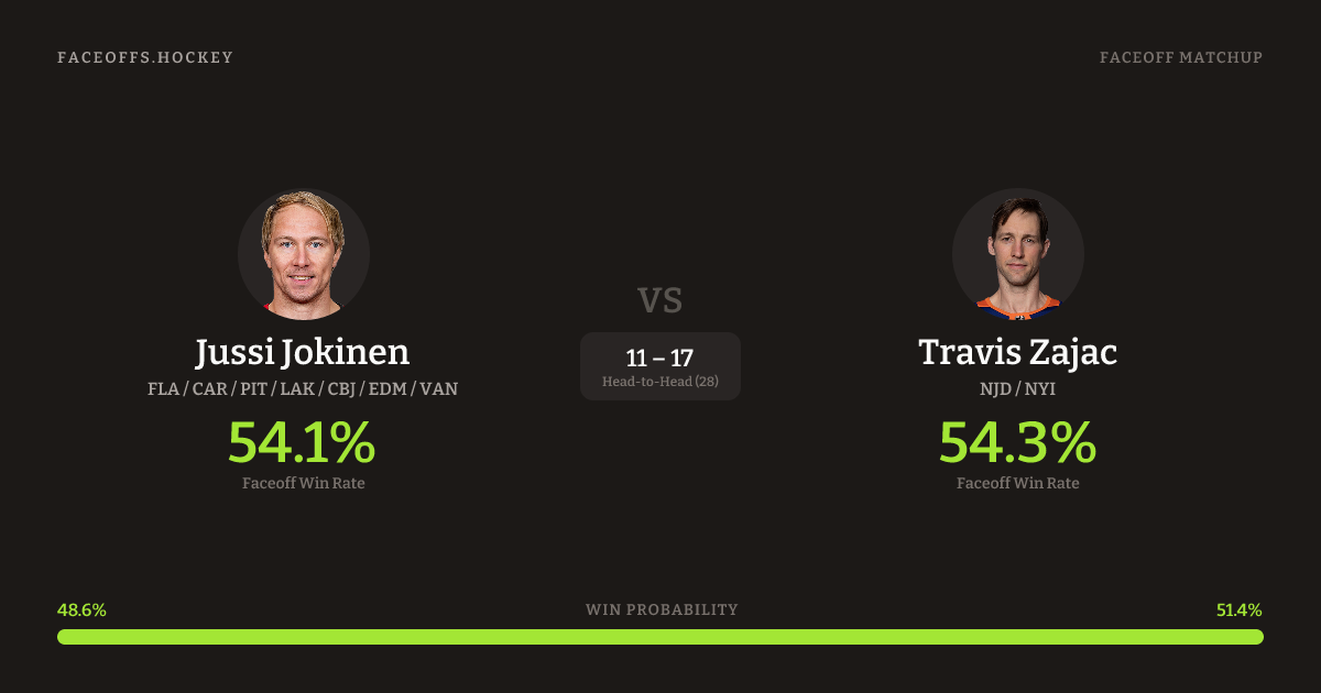 Jussi Jokinen vs Travis Zajac — Faceoff Head-to-Head