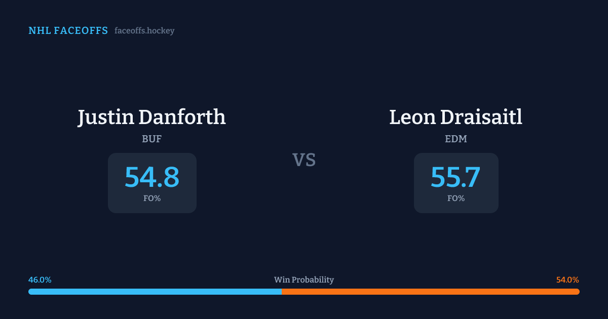 Justin Danforth vs Leon Draisaitl — Faceoff Head-to-Head