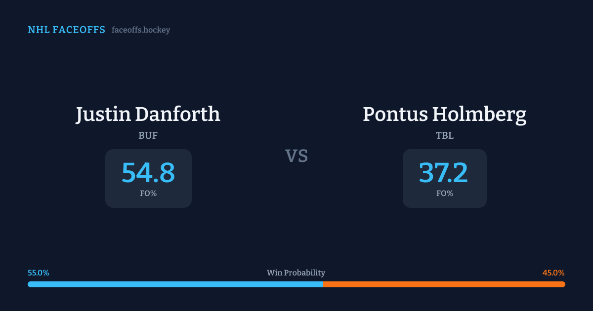 Justin Danforth vs Pontus Holmberg — Faceoff Head-to-Head