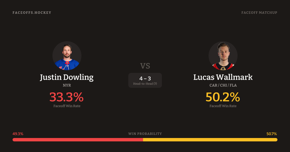 Justin Dowling vs Lucas Wallmark — Faceoff Head-to-Head