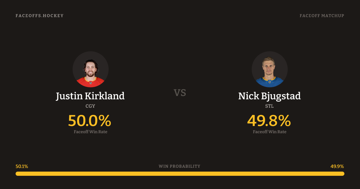 Justin Kirkland vs Nick Bjugstad — Faceoff Head-to-Head