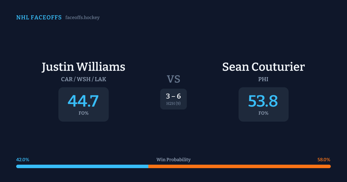 Justin Williams vs Sean Couturier — Faceoff Head-to-Head
