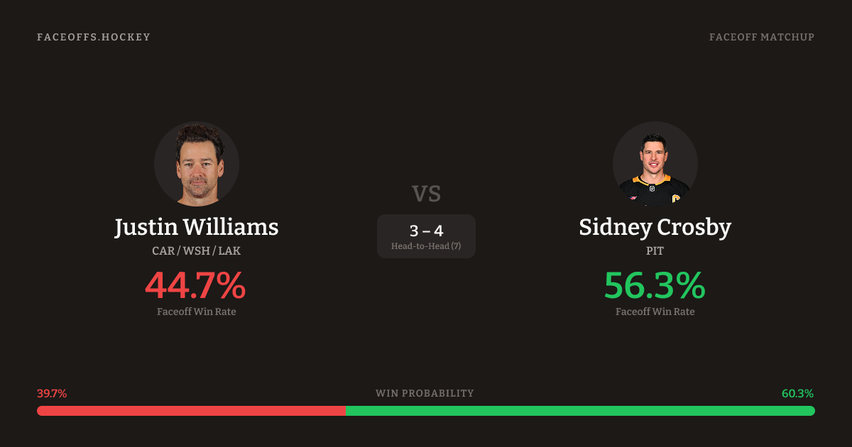 Justin Williams vs Sidney Crosby — Faceoff Head-to-Head