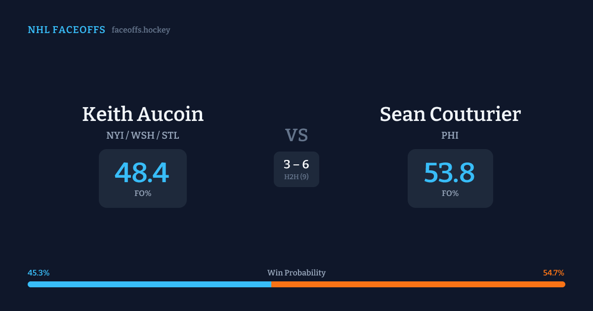 Keith Aucoin vs Sean Couturier — Faceoff Head-to-Head