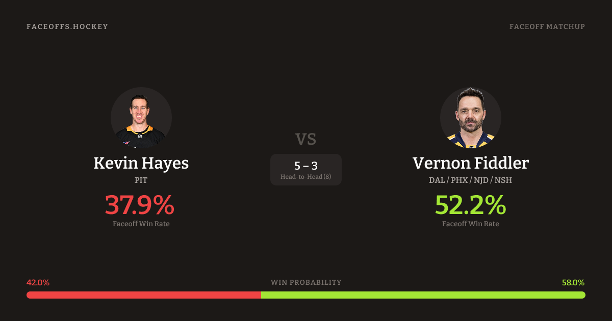 Kevin Hayes vs Vernon Fiddler — Faceoff Head-to-Head