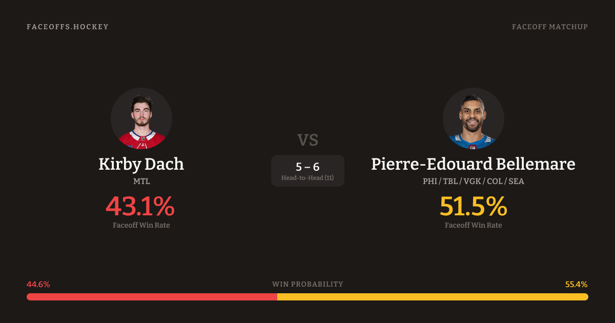Kirby Dach vs Pierre-Edouard Bellemare — Faceoff Head-to-Head