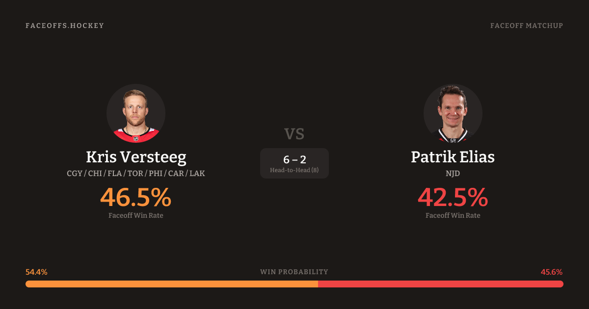 Kris Versteeg vs Patrik Elias — Faceoff Head-to-Head