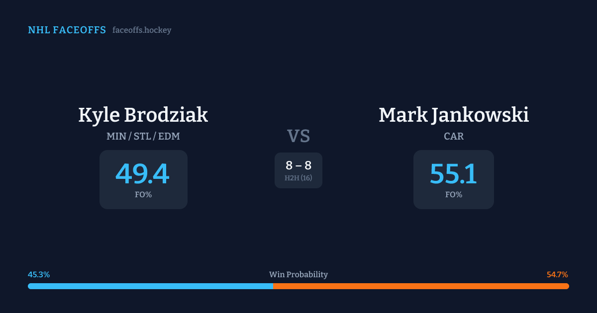 Kyle Brodziak vs Mark Jankowski — Faceoff Head-to-Head