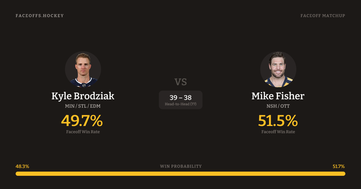 Kyle Brodziak vs Mike Fisher — Faceoff Head-to-Head