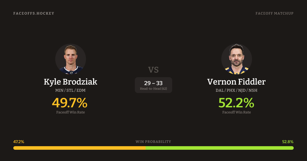 Kyle Brodziak vs Vernon Fiddler — Faceoff Head-to-Head