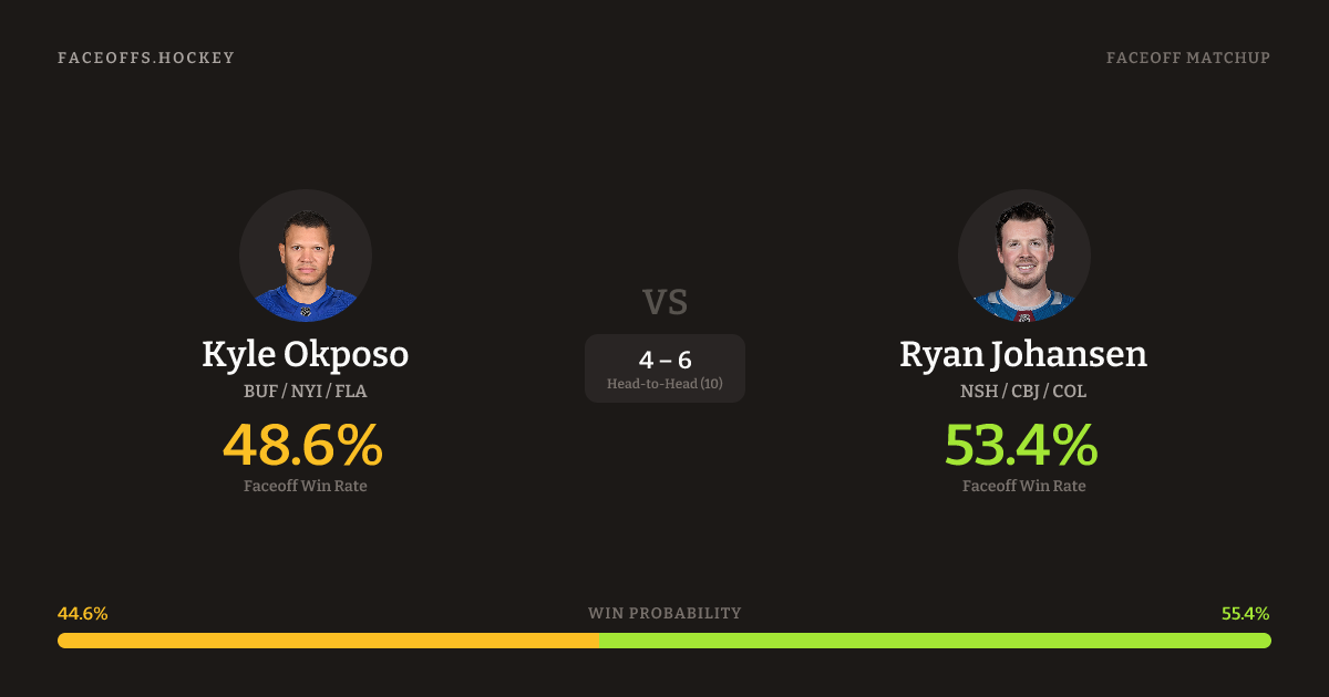 Kyle Okposo vs Ryan Johansen — Faceoff Head-to-Head