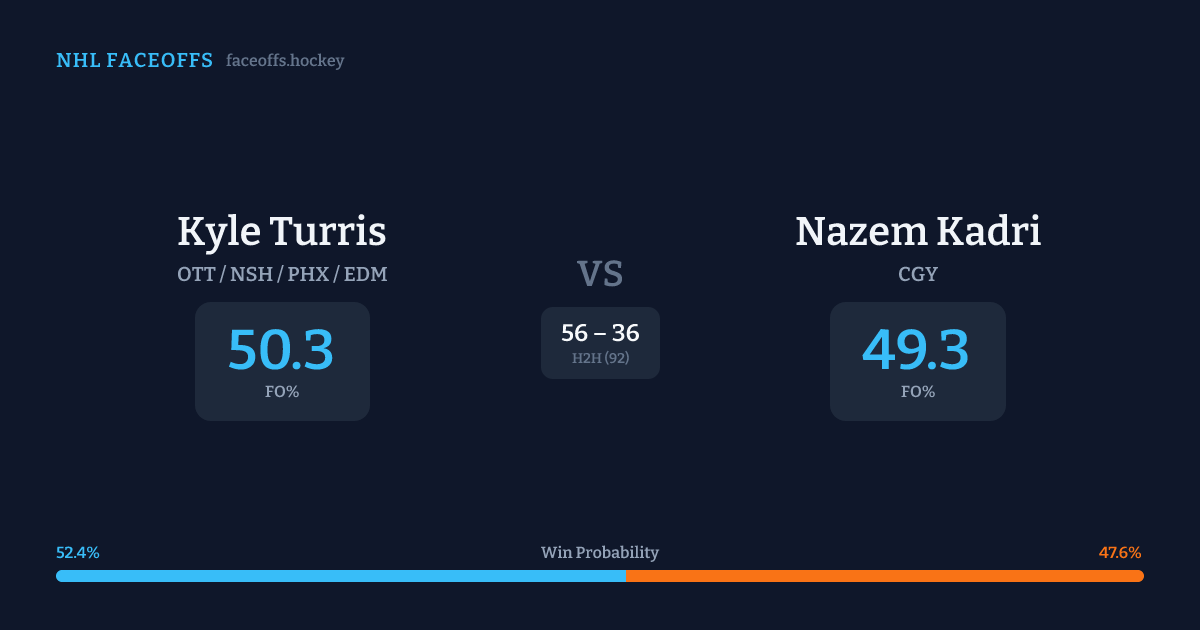 Kyle Turris vs Nazem Kadri — Faceoff Head-to-Head