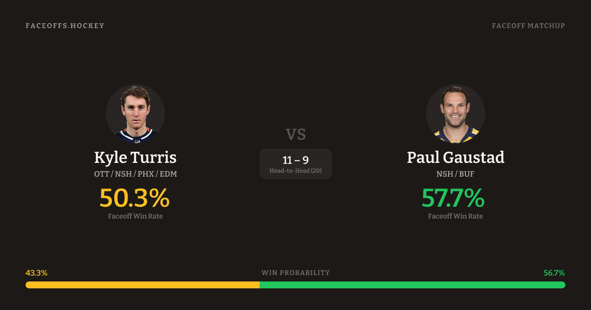 Kyle Turris vs Paul Gaustad — Faceoff Head-to-Head