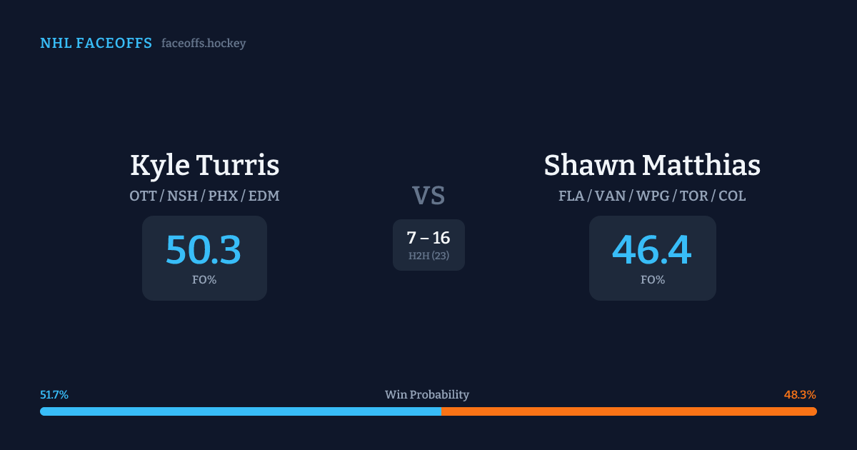 Kyle Turris vs Shawn Matthias — Faceoff Head-to-Head