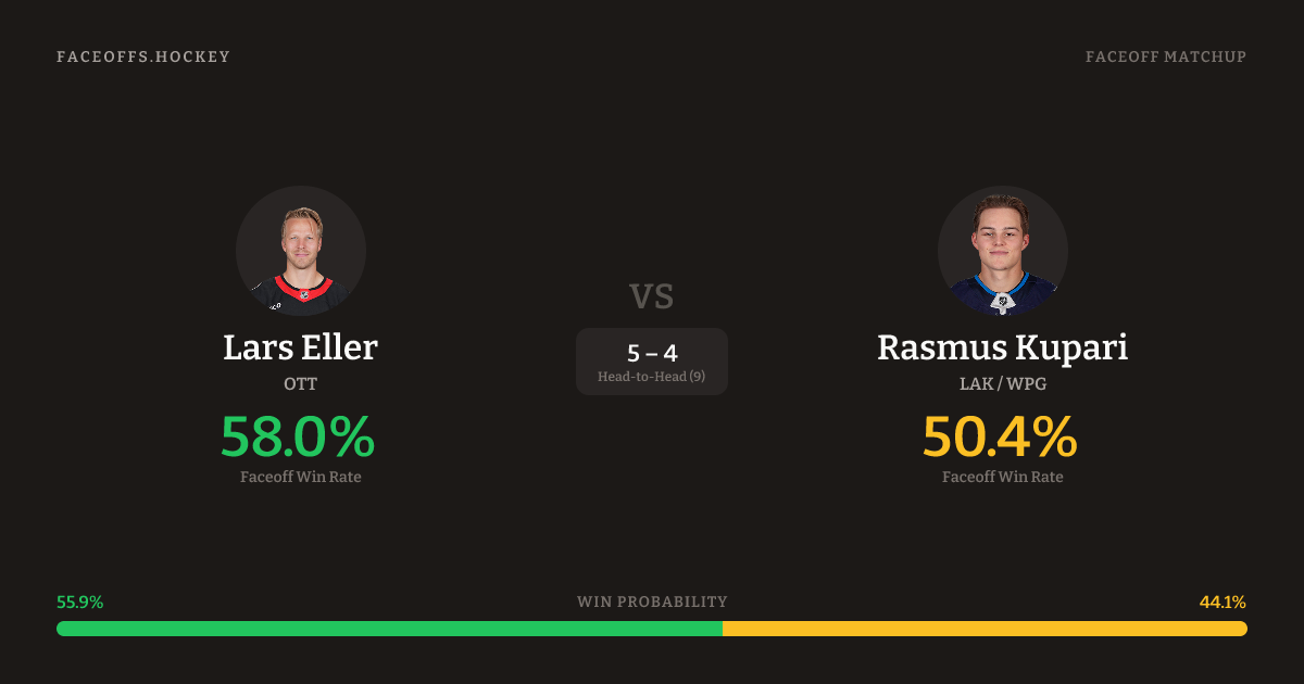 Lars Eller vs Rasmus Kupari — Faceoff Head-to-Head