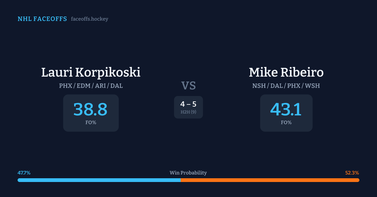 Lauri Korpikoski vs Mike Ribeiro — Faceoff Head-to-Head