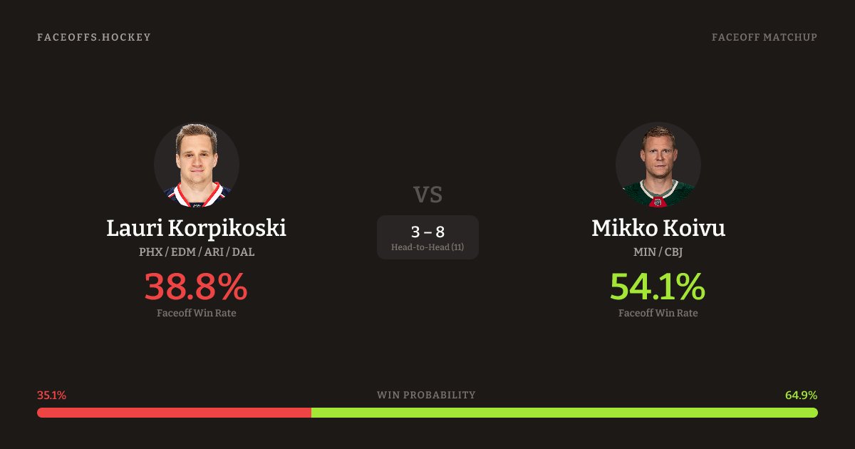 Lauri Korpikoski vs Mikko Koivu — Faceoff Head-to-Head