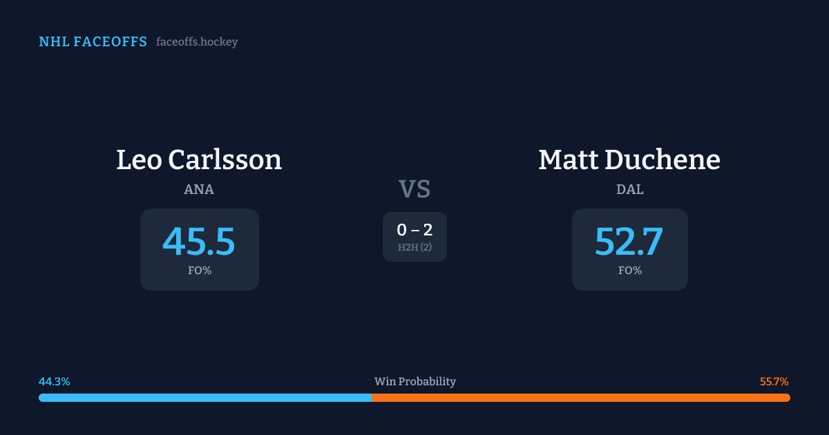 Leo Carlsson vs Matt Duchene — Faceoff Head-to-Head