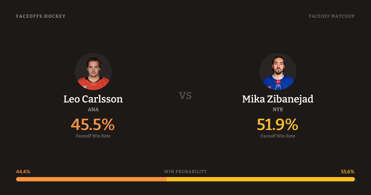 Leo Carlsson vs Mika Zibanejad — Faceoff Head-to-Head