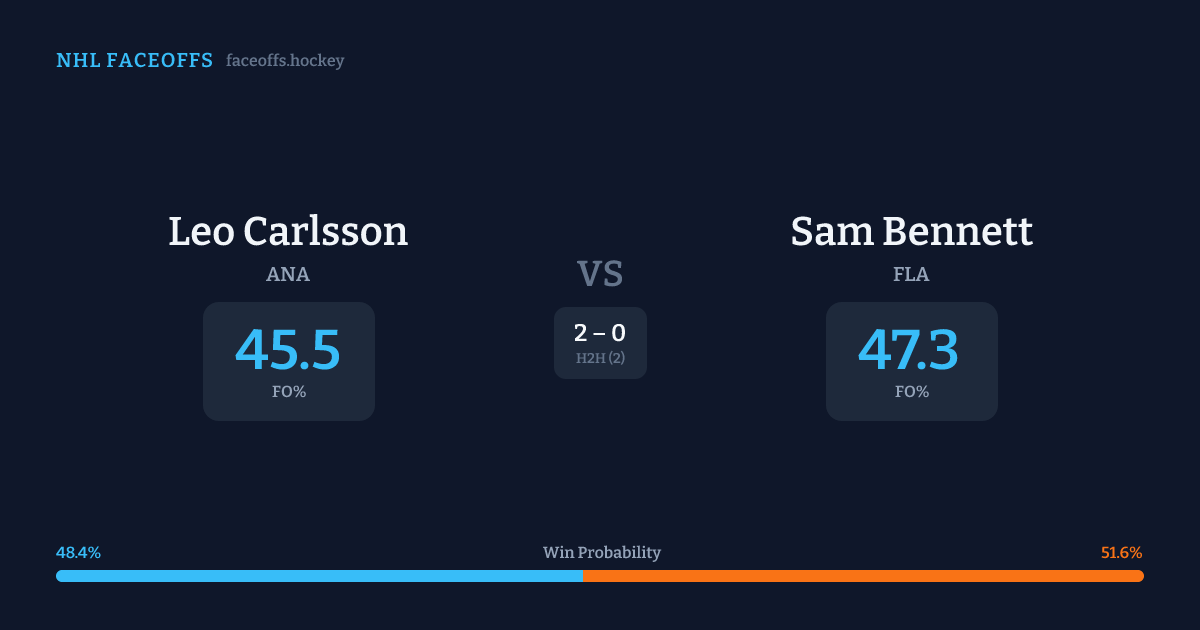Sam Bennett holds a +6.1% FO% edge overall. Carlsson wins 40.5% vs left-shot opponents — Bennett shoots left.